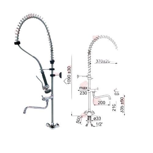 ברז שטיפה קפיצי, כולל ברז תחתון ומשפך למילוי סירים